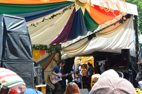 今日は、仕方なくグリーンの後方に陣地を張って、ステージ前へ移動。酒を飲みながらカンカン照りの日差し。