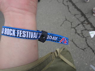駐車場の脇を抜けてリストバンド交換所に着くと、長蛇の・・・長蛇・・・あれ?いつにも増して列が長くねえか?