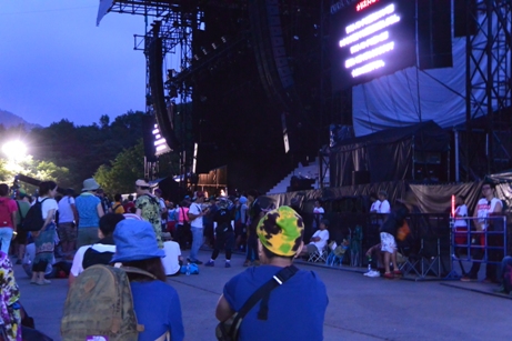 今日は、仕方なくグリーンの後方に陣地を張って、ステージ前へ移動。酒を飲みながらカンカン照りの日差し。